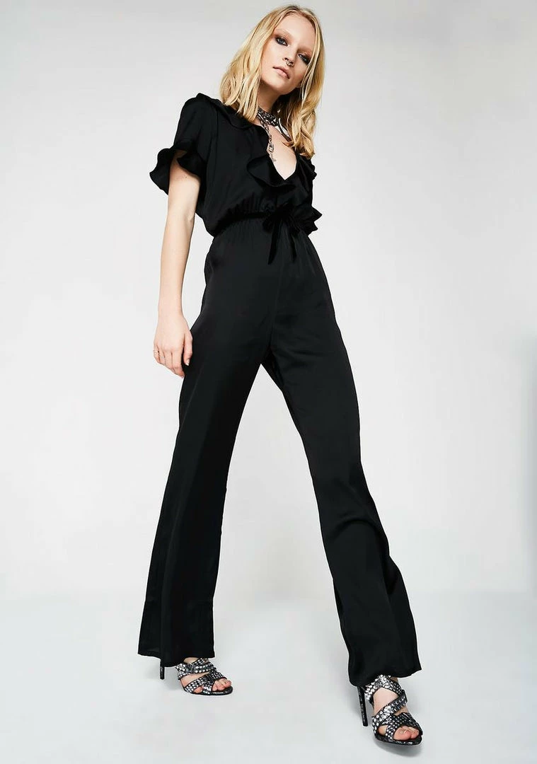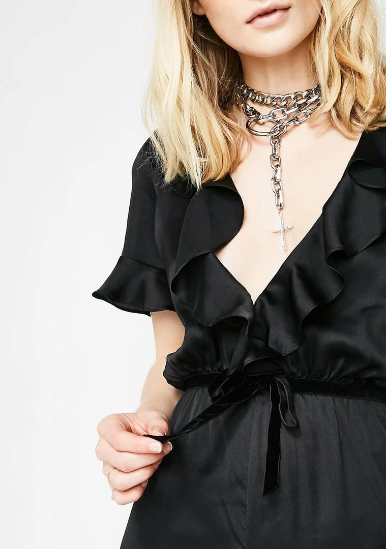 will give ya all the chic romance vibez. This sexi romper has a plungling neckline with pretty ruffled hems and a velvet waistband with a cute lil bow.