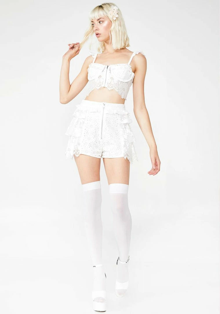 cuz youΓ’ΒΒre a desert dream. Flirt under the palm trees in these high waist shorts that have flirty lace sides and a front zip closure.
