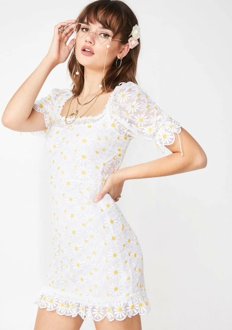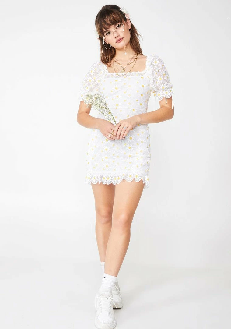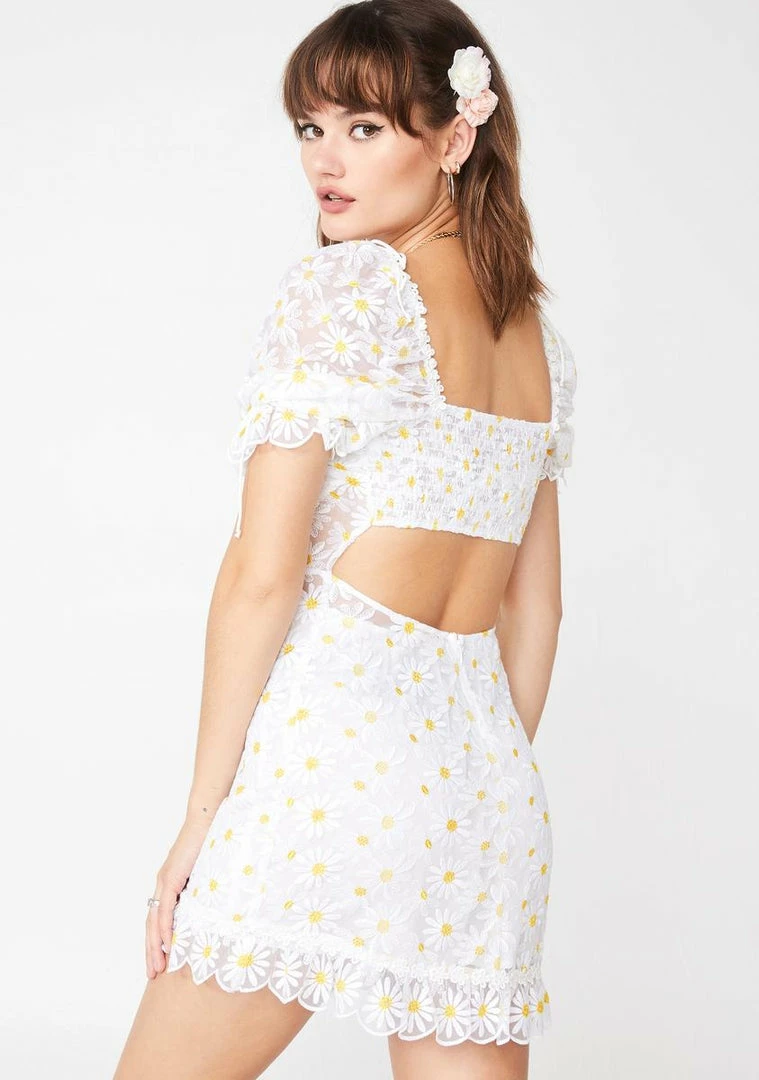 not a daisy goes by that they donΓ’ΒΒt think of you, babe. Look sweet AF in this flirty fit NΓ’ΒΒ flare dress that has an all ova embroidered daisies, smocked back, low cut back NΓ’ΒΒ invisible zip closure.