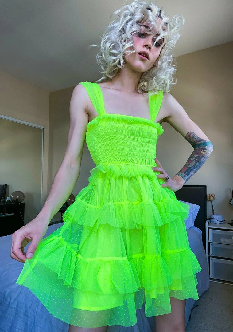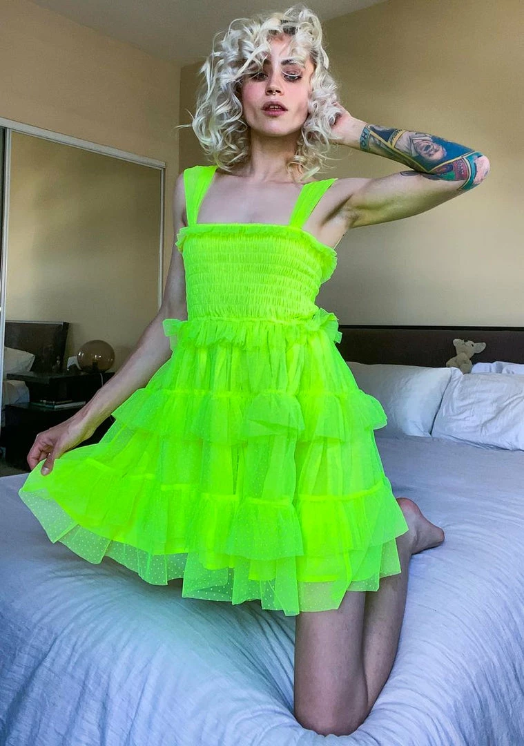 got รขยยem under your spell, babe. Make รขยยem lose their mind in this fit Nรขยย flare mini dress that has a tiered tulle skirt, smocked bodice with a square neckline and thicc straps.
