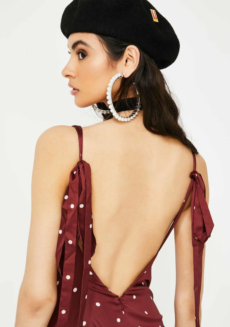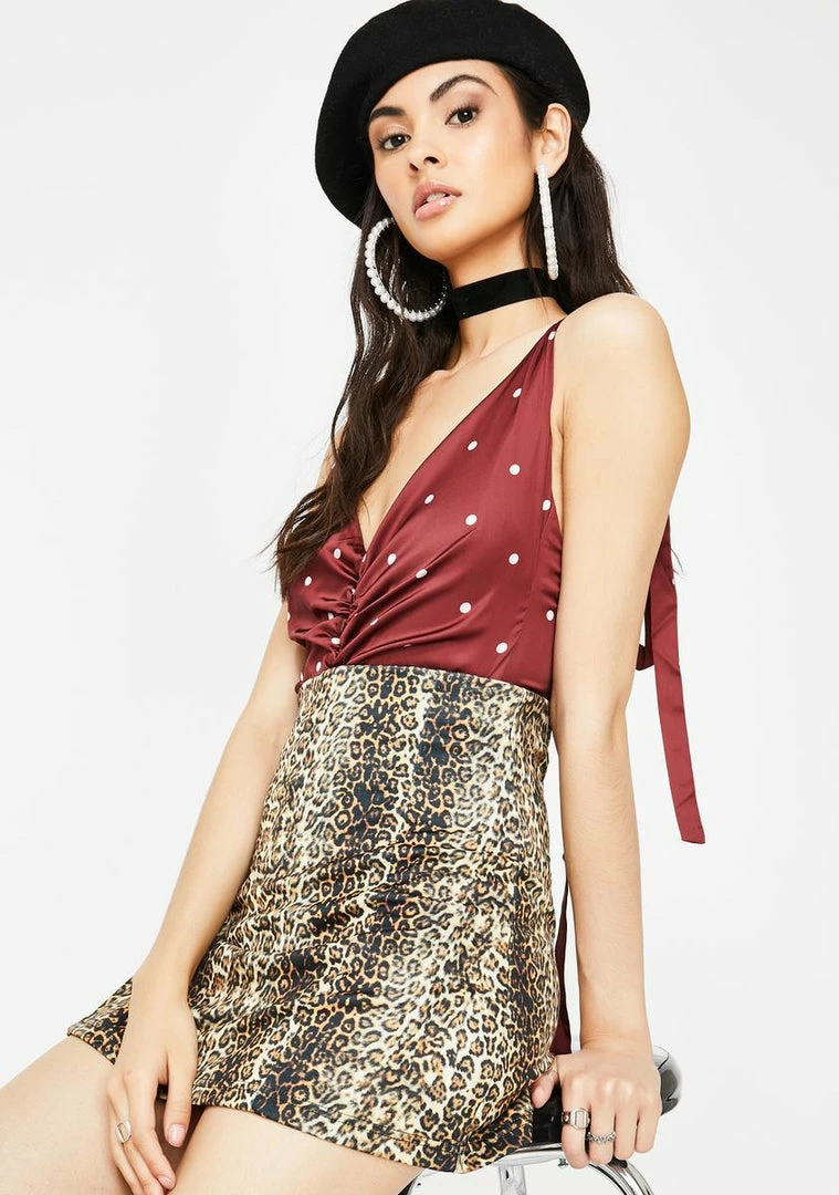 got ya lookinâ prim Nâ proper AF, babe! Show em yer girly side in this sexxxy Nâ elegant bodysuit that has a ruched design, a bikini snap closure, self-tie straps, Nâ polka dots all ova!