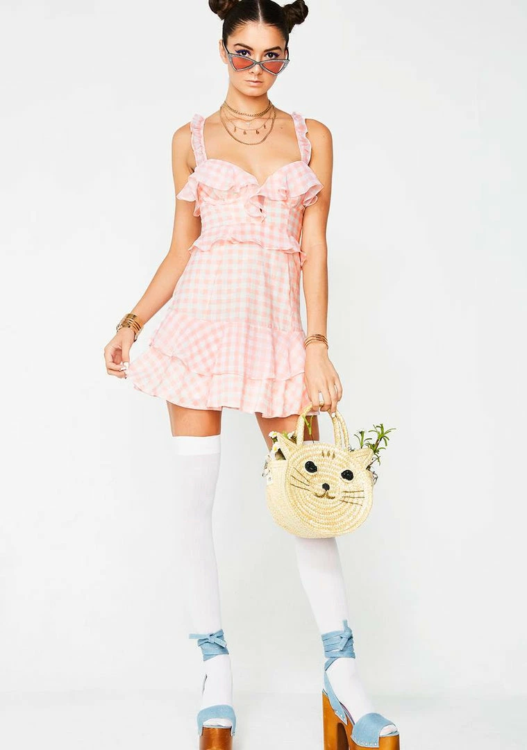 cuz they heard about ya bb girl! Giveรขยย em something to live for in this sexy lil gingham dress that has a ruffled trim all ova, a sweetheart neck, crossover straps and a lace up closure on the back.