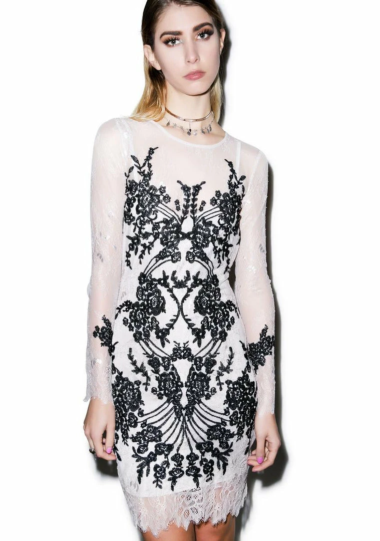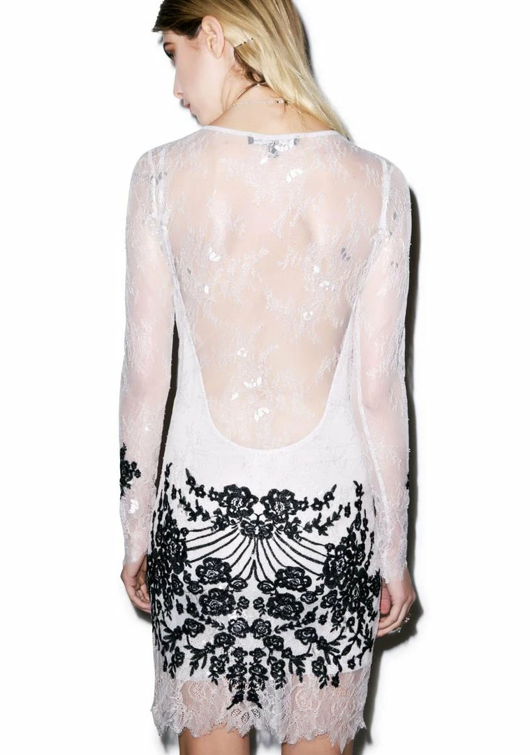 For Love & Lemons Lacey Dreams Mini Dress yer a walking dream, BB. Our fantasy is not complete without you in it draped in this beautiful, lace dress. This delicate mini features an allover lace that covers yer whole body but exposes you in the most delicious ways, especially with its large keyhole open back. With a custom delicate embroidery that rides over the front, back, hem, and wrists, yer everything we could possibly imagine and more. An amazing fit that molds to yer curves, present yerself perfect with the help of dual buttons at the back of yer neck. With a removable slip that you can choose to wear or not willingly depending, we want to know how bad do you want yer dreams to come true tonight?