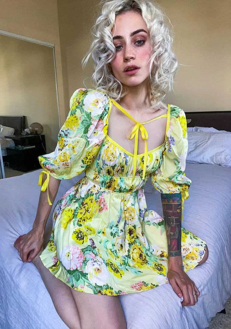 got ya livinΓ’ΒΒ for the sunshine bb! Always stay lookinΓ’ΒΒ cute in this mini sundress with romantic puff sleeves, a tie front and floral print all ova.