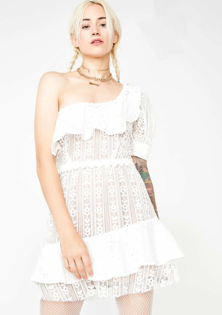 has ya flutterinΓ’ΒΒ with sweet lovinΓ’ΒΒ bb! Be a dream vision in this fully lined flirty dress that has a romantic one shoulder design, heart eyelet trim, and a side zipper closure.