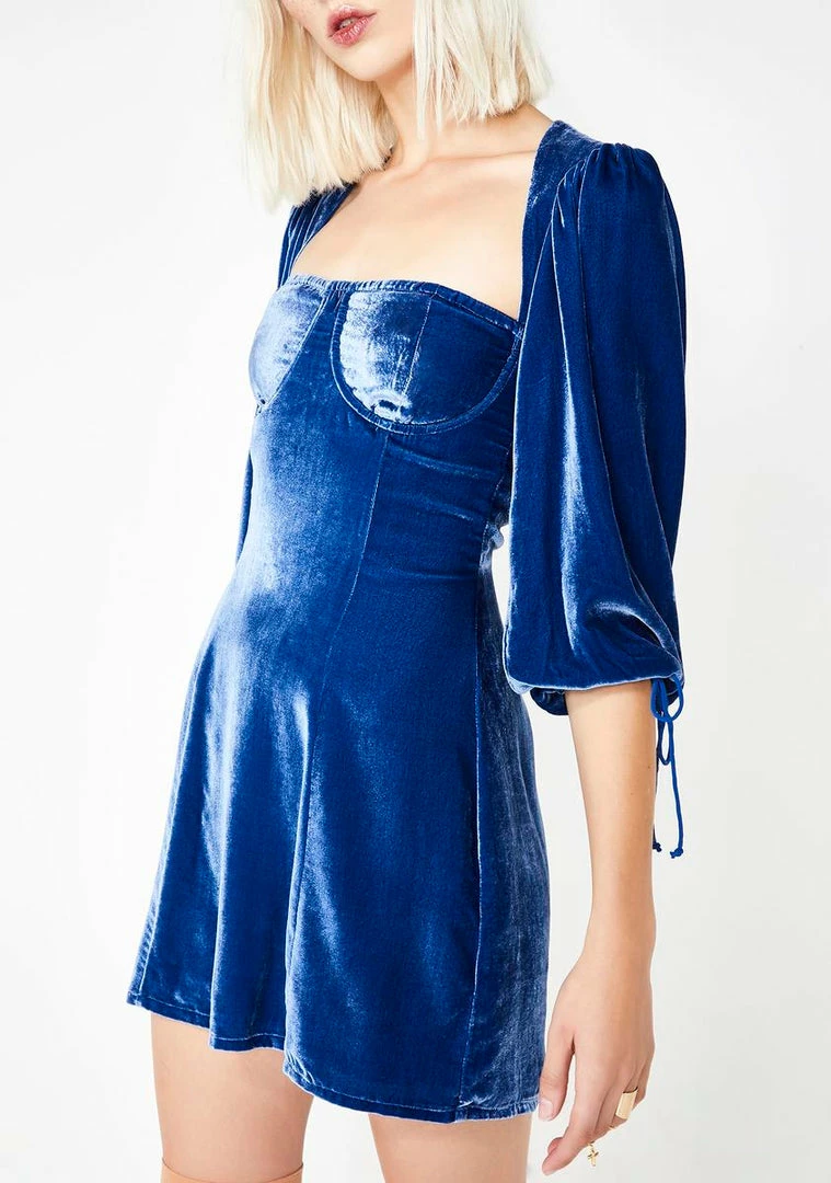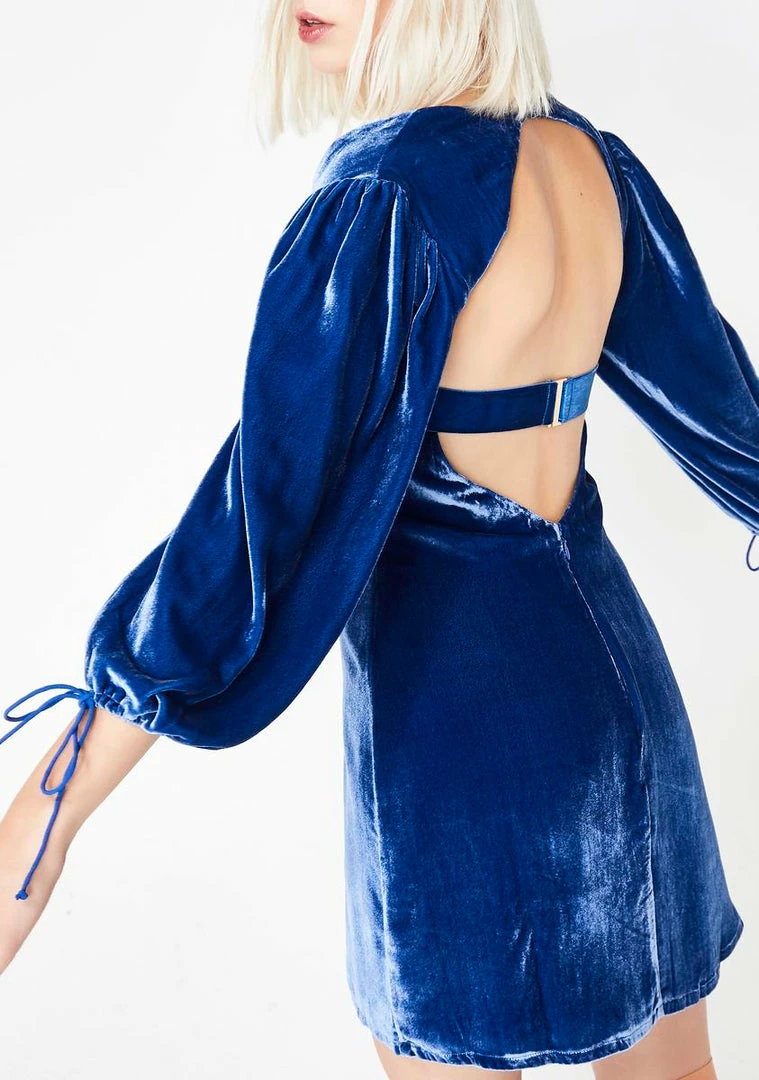 will have Γ’ΒΒem crushinΓ’ΒΒ on you. Tell Γ’ΒΒem to keep dreaminΓ’ΒΒ in this sultry mini dress that has a figure flattering silhouette, dramatic sleeves that have ties at the cuffs, an open back, and an underwire bust.