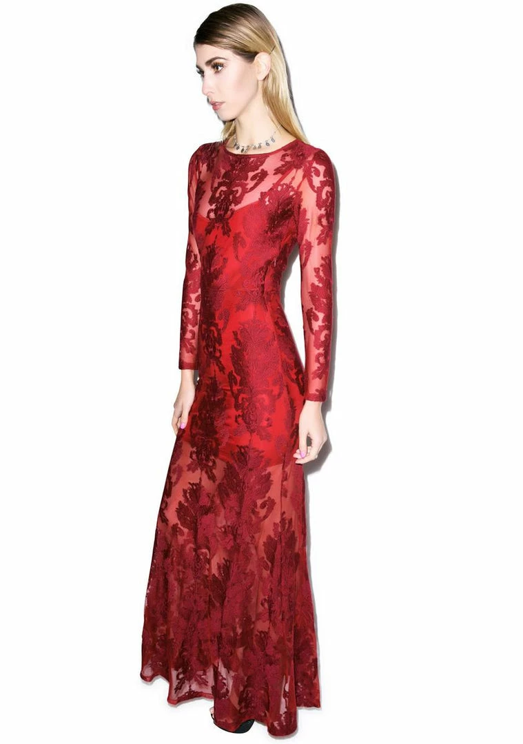 For Love & Lemons Ethereal Maxi Dress because you are the rarest rose of them all.This USA made, hand detailed lace overlay mini dress is so sexxxy and sophisticated just like a rose. ItÂs high collar fits elegantly across the front then falls into a scooping open back, showing just enough skin. The bottom hem falls all the way to the floor, where the lining stops mid thigh showing off those sexxxy legs, makin grabbin a cab easy as pie. ItÂs sheer long sleeves, and all over lace are made from a soft stretch cotton blend that hold, tuck, and lift everything in, keepin you look long and lean just like a rose in the moonlight.