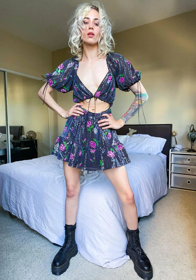 cuz youรขยยll always be their number one. Make it last forever in this sweet mini dress that has short puff sleeves with adjustable ties, a drawstring cut-out bust, tiered skirt and floral print.