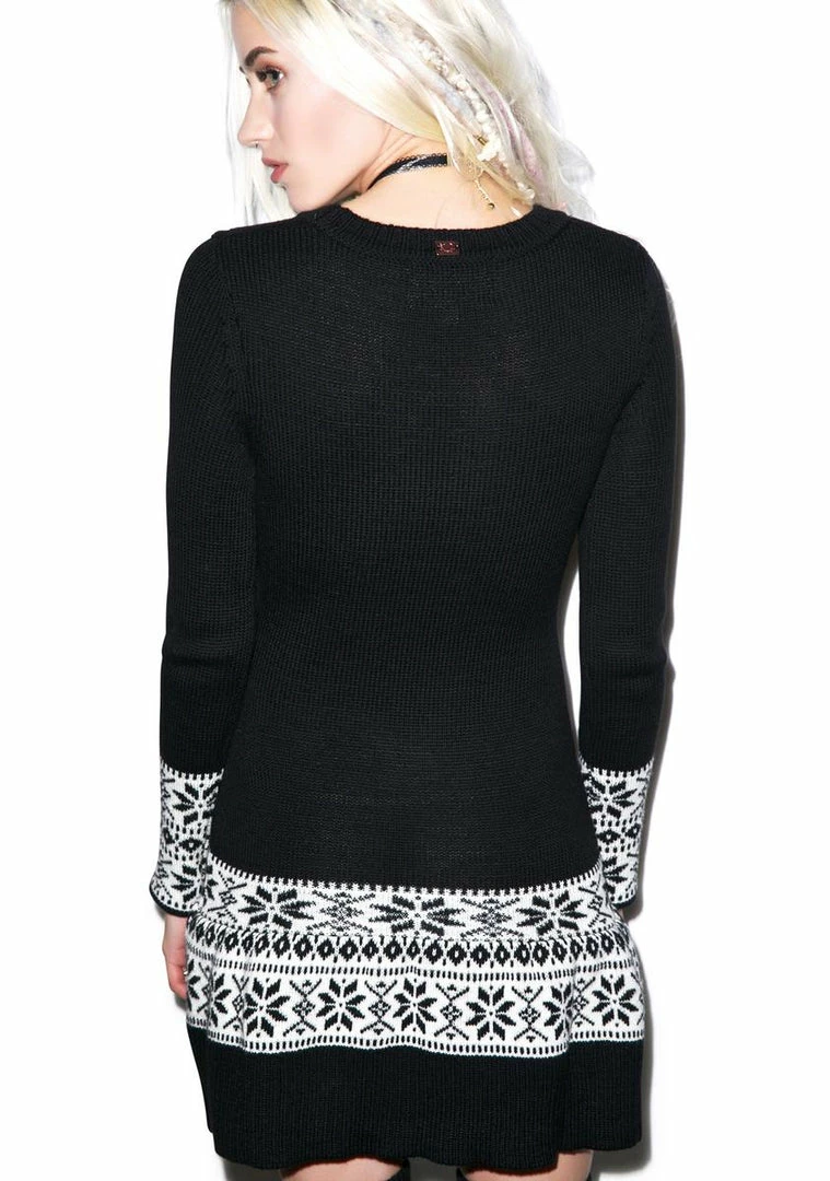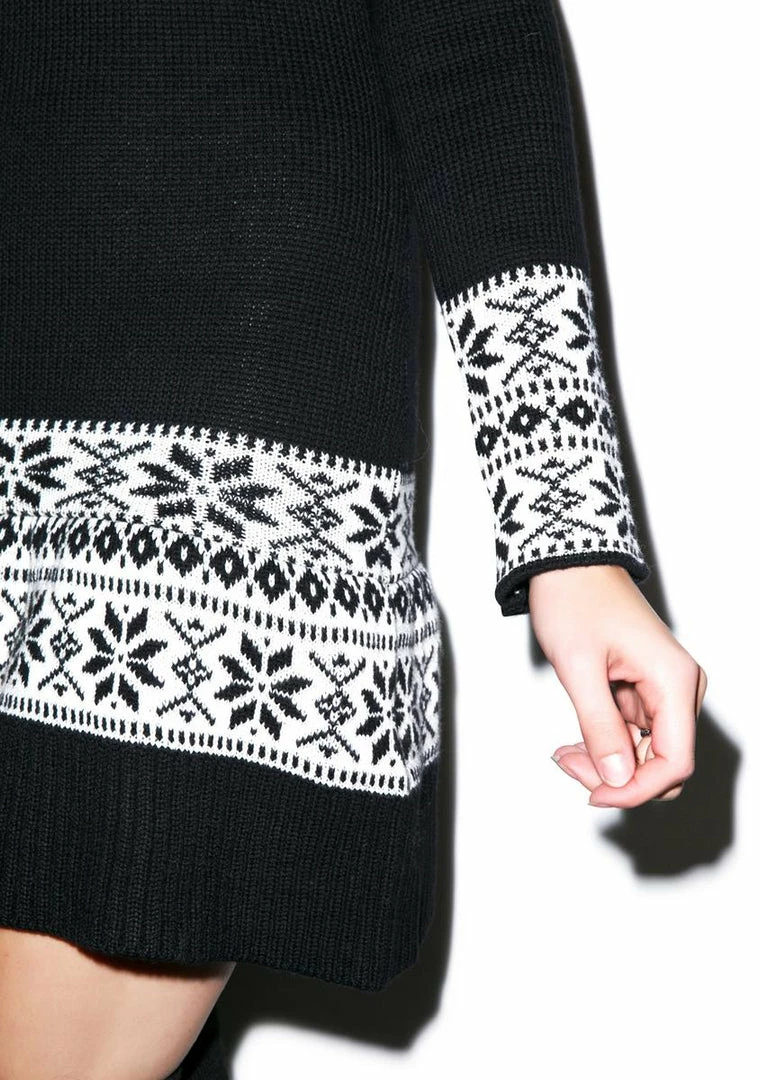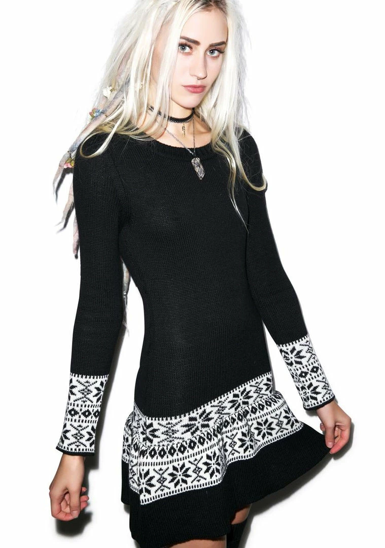 Knitz By For Love & Lemons Ice Skate Mini Dress yer spinning us in circles, BB. Especially how badazz cold yer looking in this knit, mini dress. Featurin the softttest knit youÂll ever want to be nuzzled in, this long sleeve BB molds to all yer curves while maintaining its flirty, A-line shape. With a snowflake, fairisle knit pattern traveling across yer hem and cuffs to break you off into perf pieces, we canÂt help but stress how good yer legz are lookinÂ. Supa cozy and warm, we wouldnÂt mind spotting you anytime, BBcakes.