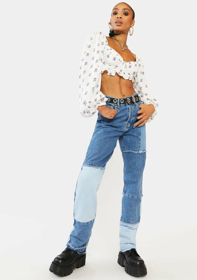 cuz youΓ’ΒΒre like a sweet kiss, babe. This crop top has a woven fabric construction made from fallen rose petals, long puff sleeves, underwire cups, and a floral print all over.