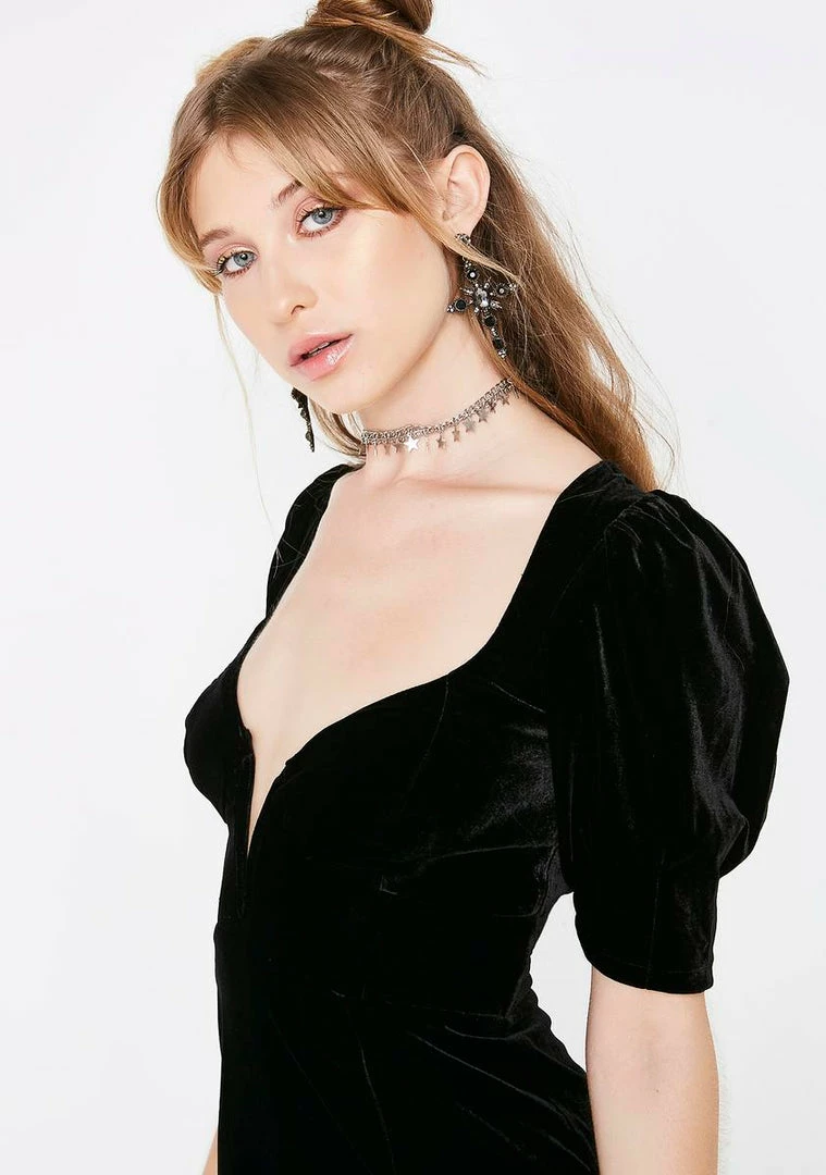 cuz you love to make a statement. Roll up looking fine AF in this luxx velvet mini dress that has a plunging V-neckline, shirred puff sleeves, and princess seams.