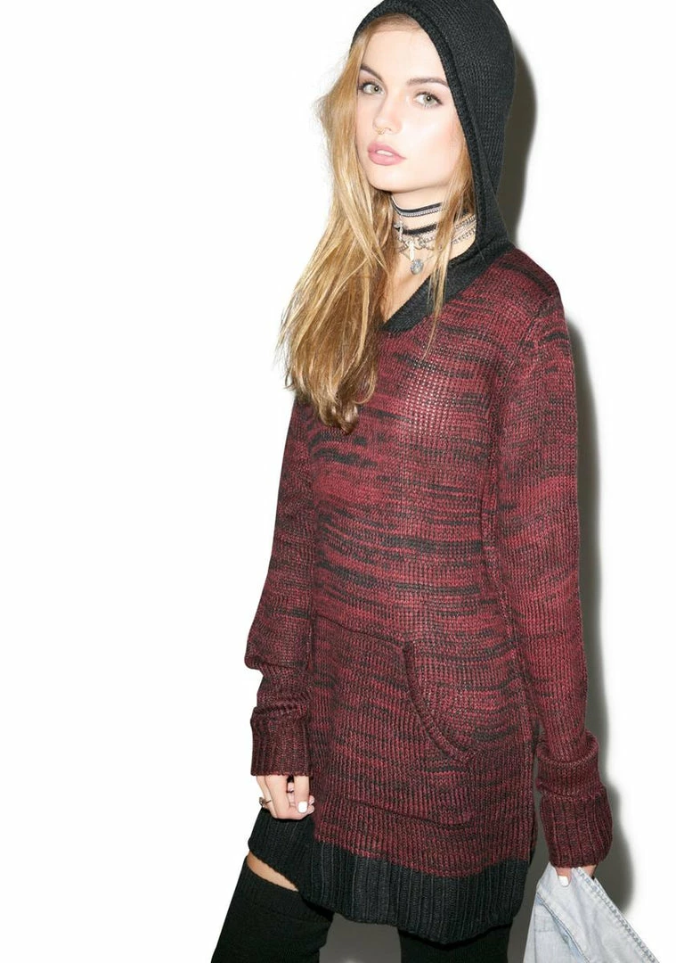 For Love & Lemons Zoey Hoodie, no need to worry about that winter chill. This amazing tight knit hoodie features all the necessities with a big Âol front pocket, wide ribbed cuffs, and contrasting bottom hem with matching hood. Perfect for wearing with yer winter booties, this soft and cozy sweater has got ya covered.